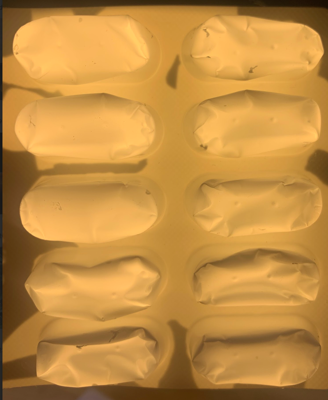 Presiono con fuerza usando mis dedos pulgares las píldoras aún cubiertas por su empaque.