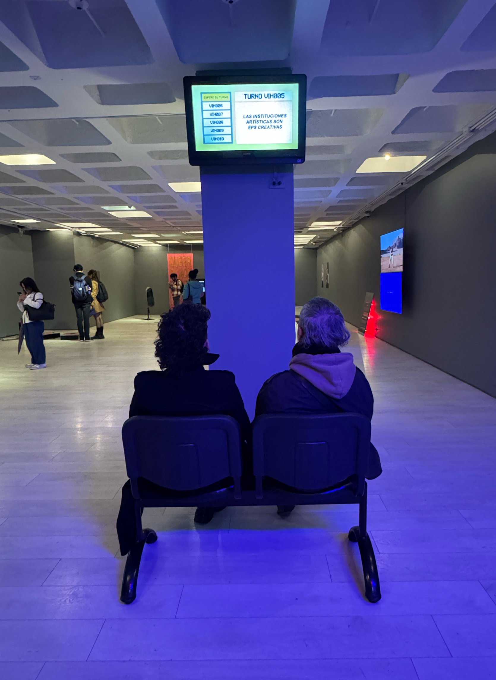 Ante el tedio de pacientes en pausa burocrática, que repetidamente asisten a recibir un tratamiento aún perpetuo, proponemos esta imagen para una espera que encarne el reclamo, el deseo y lo sagrado de los cuerpos seropositivos. En lugar de turnos marcados por cédulas y apellidos, cada cita se vuelve una consigna íntima pero colectiva, poética, que invita a pensar que el VIH, más que una enfermedad, es un síntoma político.